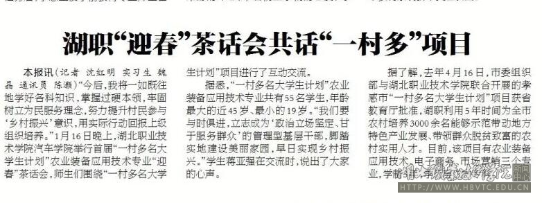 【孝感晚报】湖职“迎春”茶话会共话“一村多”项目