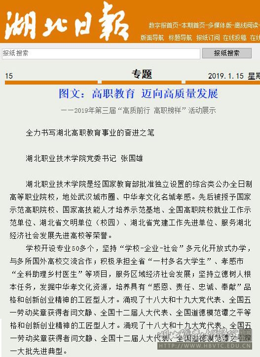 【湖北日报】高职教育 迈向高质量发展