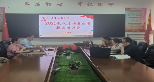 (本网讯 曾欢)4月9日,卫生技术学院在立德楼205会议室召开2025版人才培养方案专题研讨会,副院长许智、专业带头人罗萍及专任教师乔春梅、陈志伍、田迎霞等参会,围绕方案修订方向、核心框架及实施路径展开深入研讨。